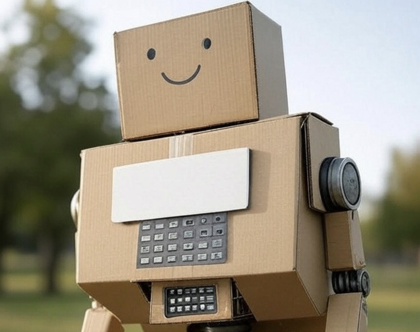 見た目は、小学生が夏休みの工作で作ったようなロボットを想像して欲しい。ただ違うのが腰から下の下半身が人間のそれと見間違うほどの精巧さでできていた。