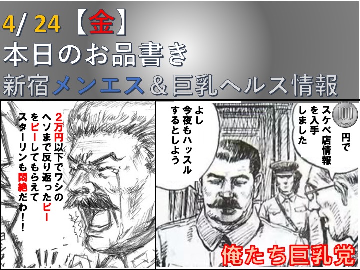 🆕大久保のハイコスパ合体店🆕4/24【金】本日のお品書き【新宿周辺&巨乳ヘルス】新宿エロメンエスカタログ
