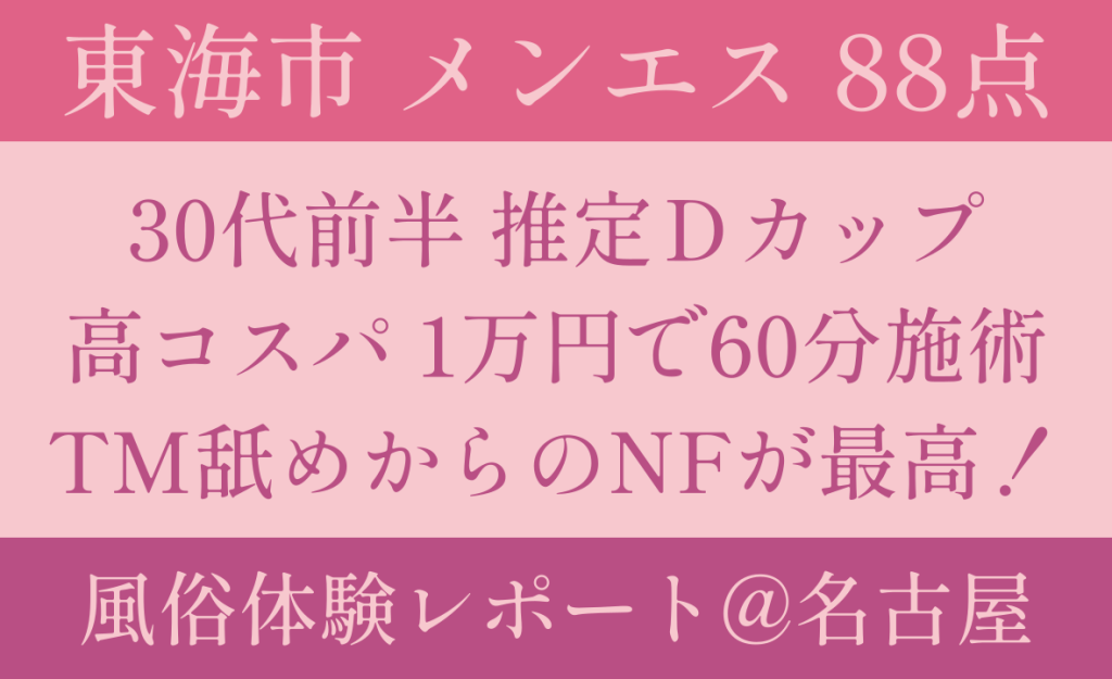 今回は東海市のマンション型メンエスの体験談を書いていきたいと思います。
