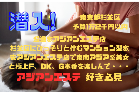 【超過激アジアンエステ店】杉並区にひっそりと佇むマンション型激安アジアンエステ店で東南アジア系美女と極上F、DK、G本番を楽しんで・・・