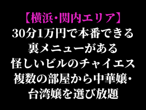 4/5~営業確認【横浜・関内エリア】30分1万円で本番できる裏メニューがある怪しいビルのチャイエス 複数の部屋から中華嬢・台湾嬢を選び放題